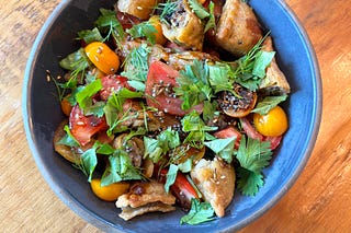 Samosa-Tomato Salad with Sizzling Spices and Fresh Herbs