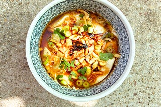 A sweet-savory-tangy-spicy dip topped with chile and fresh herbs